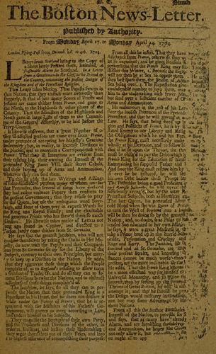 | First ever issued—in writing. Gazette in Venice, 1583. English Mercury, 1588. “Publick Occurrences” 1690. Legislative Interference. To cure the ‘Spirit of Lying.’ The Christian Indians. Massacre of French Indians. General character of the paper and its reading matter. | ||