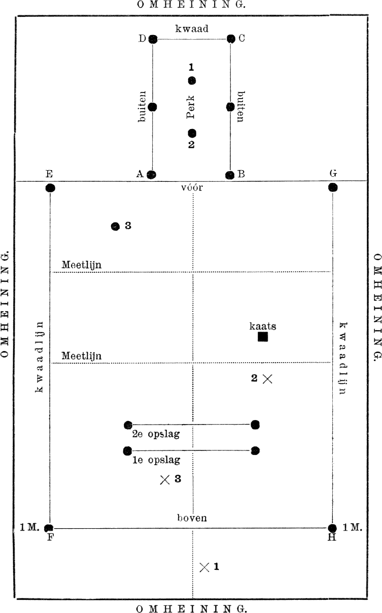 Moge dit openluchtspel bij uitnemendheid meer en meer beoefenaars en voorstanders vinden, waar men in onzen tijd steeds meer doordrongen wordt van 't groote belang der oefening van 't lichaam, ook op de ontwikkeling der hoogere vermogens van den geest: „den wil, het karakter, den moed, de tegenwoordigheid van geest, de scherpzinnigheid”.