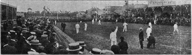 zong De Genestet, toen hij nog „jong en jolig” was en „'t groene veld hem meer trok dan het groene laken.” Dat spel was het raketten. Deze regelen zijn mede van toepassing op het kaatsen, dat Oud-Hollandsch balspel. Immers op den dag van den grooten wedstrijd van den Ned. Kaatsbond zijn reeds 's morgens vele honderden naar de kampplaats opgetrokken, die in den middag tot een 5000 tal zijn aangegroeid, om getuige te zijn van de meesterlijke slagen van Frieslands beroemde spelers. Er zijn er bij honderden, die zich in den morgen een plaatsje in de tribunes hebben uitgekozen, en tot des avonds 7 uur met onverdeelde aandacht het spel gade slaan.