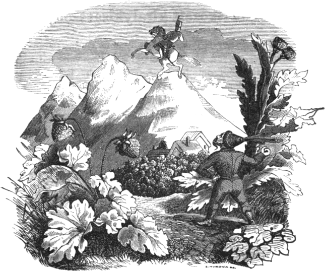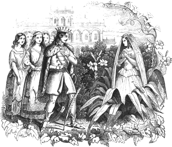 A mint igy tünődött éjszaka, látja, hogy valami suhan be az ablakon s egyenesen a rozmarinra száll, s elkezd szépen beszélgetni hozzá. Én a királynak háladatossággal tartozom, mert ő engemet már kétszer szabaditott meg a sólyom körmei közül, igy beszélt a kis aranyos madár, mert a volt, a mi az ablakon besuhant; most lefizethetném adósságomat, el tudnám vezetni azon leányhoz, ki előtt te meghajolsz. Az a tündérkertben van; azért jöttem ide megmondani, hogy te indulj el holnap előtte s vezesd; én majd fölöttetek repülök; csak rám vigyázz mindenütt, s utánam jöjj. Jól hallotta ezeket a király, mert koránsem hagyá őt aludni a nagy gondolkozás; alig várhatá a reggelt, mindjárt utnak indult. A rozmarin előtte ment, a madár pedig fölötte repült. -3-