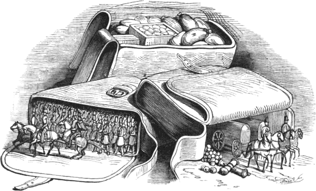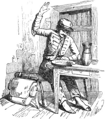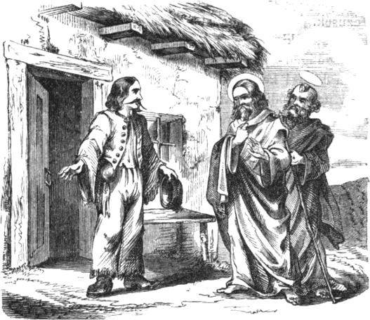 Élnek már most ők néhány hónapig együtt, s mondja egykor ebédnél az öreg király: vedd kezedhez az ország kormányzását, én már öreg vagyok, ohajtom a nyugodalmat. Feleli a dragonyosból lett király: jóllehet én már sokat próbáltam, de még esztendeig elmegyek próbálni valamerre. Eleget marasztalta felesége és az öreg király, de hasztalan volt kéréseik. Elbucsuzott mindkettejétől, megy ő már mendegél s beszáll egy vendégfogadóba, kér magának enni, inni. A kocsmáros -40- parancsolja mindjárt: Ignácz, hordj ebédet ennek az urnak. Feleli: mindjárt. Hordja ő az ételt, és nem látja a király, s kérdi a kocsmárostól: ki lenne az, a ki az ételt hordja. Mondja, hogy az inasa. Kérdi a király: mennyiért adná neki? Feleli: háromszáz aranyért. Mindjárt lefizette a király, és fölkelvén az ebédtől mondja: Ignácz, gyere, menjünk! Ő tehát megy és beszélgetnek együtt, s beestveledvén, találnak egy helyet, hol sok furmányosok kifogtak; itten mondja a király nekik: jó estvét! elfogadták és egyszersmind kérdi: megengedik-e neki, hogy itt velök meghálhasson. Miért ne? felelték. Itten mindjárt parancsol a király: hordj fát, Ignácz! rakj tüzet. A kereskedők és furmányosok senkit se láttak, hogy hordaná a fát és tüzet csinálna. Itten mondja egy: király, ez helyes szolga; hanem cseréljünk! mondja a kereskedő, nekem van egy tarisznyám, melyből, ha mondom, annyi katonaság masirozik ki, a meddig azt nem mondom, hogy elég. Itten megteszik a próbát; kinyitja a tarisznya száját és mondja: mars kifelé! Jön kifelé a sok katonaság, lovasság, gyalogság, mig csak nem mondotta, hogy elég. Ezután ismét parancsolja: mars befelé! és mind bemasiroztak. Ez megtetszett a királynak; tehát cseréltek; de mikor elváltak egymástól, a kereskedő nem mondotta: Ignácz, maradj nálam. Tehát mikor megy a király haza felé tarisznyájával, megéhezvén, monda: Ignácz, ha most itt volnál, be megenném, ha hoznál valamit. Hiszen itt vagyok. Hát nem mentél el a kereskedővel? Hiszen nem mondotta, hogy maradjak nála, én biz eljöttem. -41-