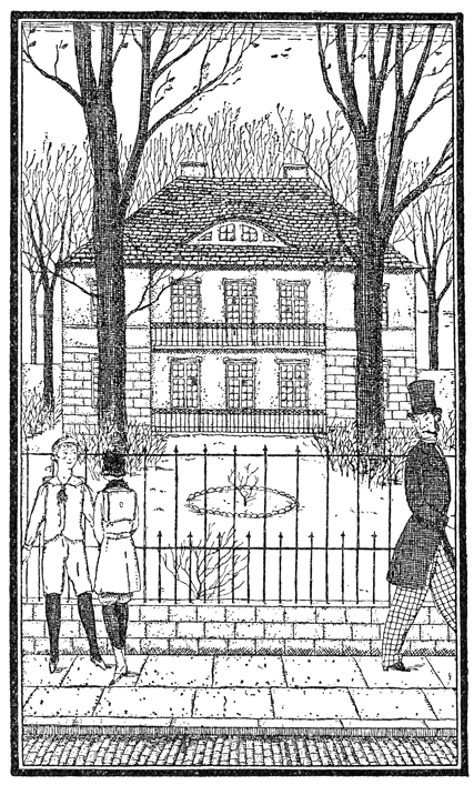 Dann verließen sie die Wallanlagen unfern des Bahnhofes, sahen einen Zug mit plumper Eilfertigkeit vorüberpuffen, zählten zum Zeitvertreib die Wagen und winkten dem Manne zu, der in seinen Pelz vermummt zuhöchst auf dem allerletzten saß. Und am Lindenplatze, vor Großhändler Hansens Villa, blieben sie stehen, und Hans zeigte ausführlich, wie amüsant es sei, sich unten auf die Gartenpforte zu stellen und sich in den Angeln hin und her zu schlenkern, daß es nur so kreischte. Aber hierauf verabschiedete er sich.