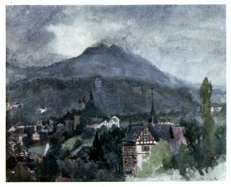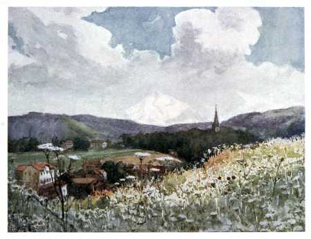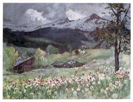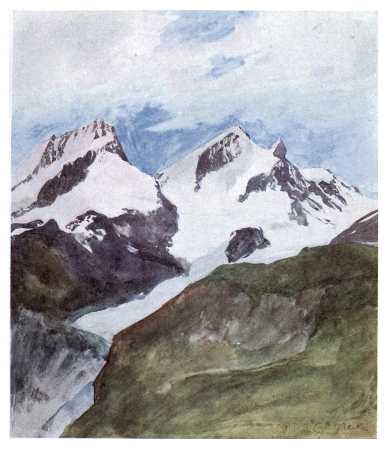 JOHN RUSKIN, in a fine and famous passage, describes the effect of a first view of the Alps upon a young and sensitive mind. He was at Schaffhausen with his parents. "We must have spent some time in town-seeing," he writes, "for it was drawing towards sunset when we got up to some sort of garden promenade—west of the town, I believe; and high above the Rhine, so as to command the open country across it to the south and west. At which open country of low undulation, far into blue—gazing as at one of our own distances from Malvern of Worcestershire, or Dorking of Kent,—suddenly—behold—beyond! There was no thought in any of us for a moment of their being clouds. They were clear as crystal, sharp on the pure horizon sky, and already tinged with rose by the sinking sun. Infinitely beyond all [2] that we had ever thought or dreamed,—the seen walls of lost Eden could not have been more beautiful to us; not more awful, round heaven, the walls of sacred Death. It is not possible to imagine, in any time of the world, a more blessed entrance into life, for a child of such a temperament as mine."