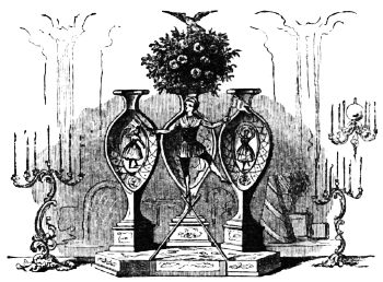 Au-dessous de cette plaque est un petit marteau également doré dont la forme indique suffisamment les fonctions; mais, pour qu’il n’y ait aucun doute à cet égard, une petite tête fantastique entre deux mains de même nature sortant de la porte, comme d’un pilori, semblent indiquer le mot: Frappez, qui est placé au-dessous d’elles.