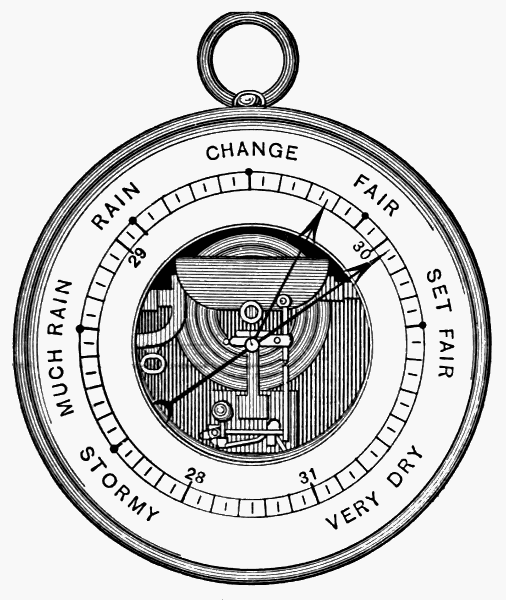 State of the Sky.—By the state of the sky is meant the condition of the sky as to its cloudiness. Clouds add much to the beauty and variety of nature. They are often gorgeously colored at sunset. By their changes in form, color, and amount from day to day they relieve what might otherwise be a wearisome succession of the same weather types. Prevailingly overcast skies have a depressing effect. Prevailingly clear skies become monotonous. A proper amount of bright sunshine is essential for the ripening of crops, but too much sunshine may parch soil and vegetation, and become injurious. Clouds bring rain; hence a sufficient amount of cloudiness is just as necessary as a sufficient amount of sunshine. The drift of clouds shows us the direction of movement of the air above us, and is of considerable help in forecasting the weather. Fog, which is a very low cloud, is in some cases so common as to be a meteorological element of great importance. In the city of London, where fogs are very prevalent, especially in winter, the average number of hours of bright sunshine in December and January is only fifteen in each month. The London fogs are, in great part, due to the presence in the air of vast numbers of particles of soot and smoke from millions of fires. These particles increase the density of the fog and prolong its duration.