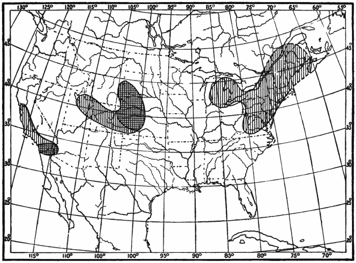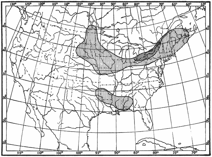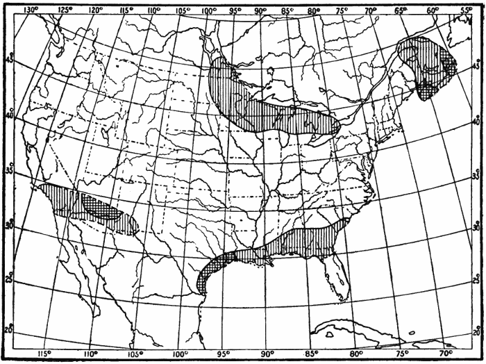 Rainfall.—Under the general term rainfall, meteorologists include, besides rain itself, snow, hail, sleet, etc. The term precipitation is also often used. Rainfall stands in close relation to human life and occupations. It feeds lakes and rivers, thus furnishing means of transportation, power for running mills and factories, and water supplies for cities. Regions of abundant rainfall are usually heavily forested, like the Amazon valley in South America, and parts of Equatorial Africa. In civilized countries lumbering is apt to be an important occupation in districts of heavy rainfall, as in Oregon and Washington in our own country, and in Southern Chile in South America. Where there is a moderate rainfall, and other conditions are favorable, there agriculture is possible, and farming becomes one of the chief occupations, as in the Mississippi and Missouri valleys in the United States, and in Western Canada. Districts which have a rainfall too small for successful agriculture, but are not by any means deserts, are often excellent grazing lands, as in the case of parts of Texas, Nebraska, and Kansas in the United States, and the Argentine Republic in South America. Where there is very little rainfall deserts are found. Cities are not built in deserts, because there are no occupations to attract large numbers of men. The inhabitants of the desert are wandering tribes, which move from place to place in search of water and food for themselves and their animals. Rain and snow cleanse the air, washing out impurities such as dust and smoke. Hence they are important agents in preserving health.