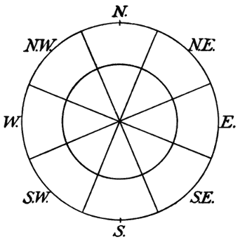 Record the direction of the wind according to the four cardinal points of the compass (N., E., S., and W.) and the four intermediate points (NE., SE., SW., and NW.). The direction of the wind is the point from which the wind blows. You can determine the points of the compass roughly by noting where the sun rises and where it sets.