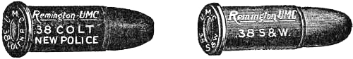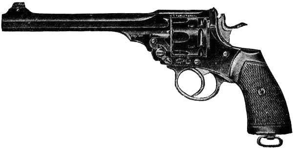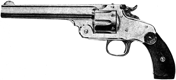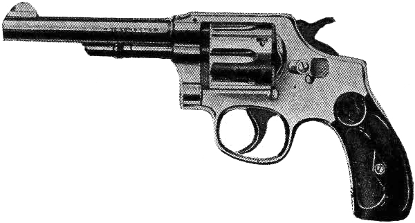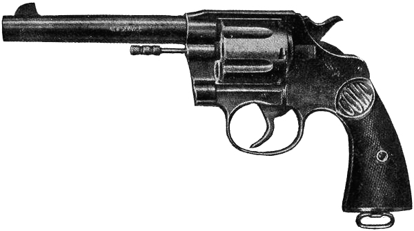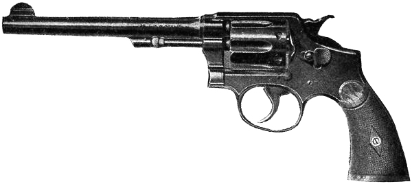 The service revolvers still in use in the United States army and navy are the Smith & Wesson and Colt, both .38 caliber, and taking the same ammunition. They have passed the prescribed series of tests as established by the United States government,[3] and as improved and perfected represent, without doubt, the highest development of the military revolver.