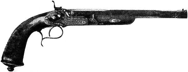 The pistol in early days was considered a gentleman’s arm—a luxury. It was the arm generally selected for duelling when that code was in vogue, the contestants standing 10 to 20 paces apart and firing at the word of command.