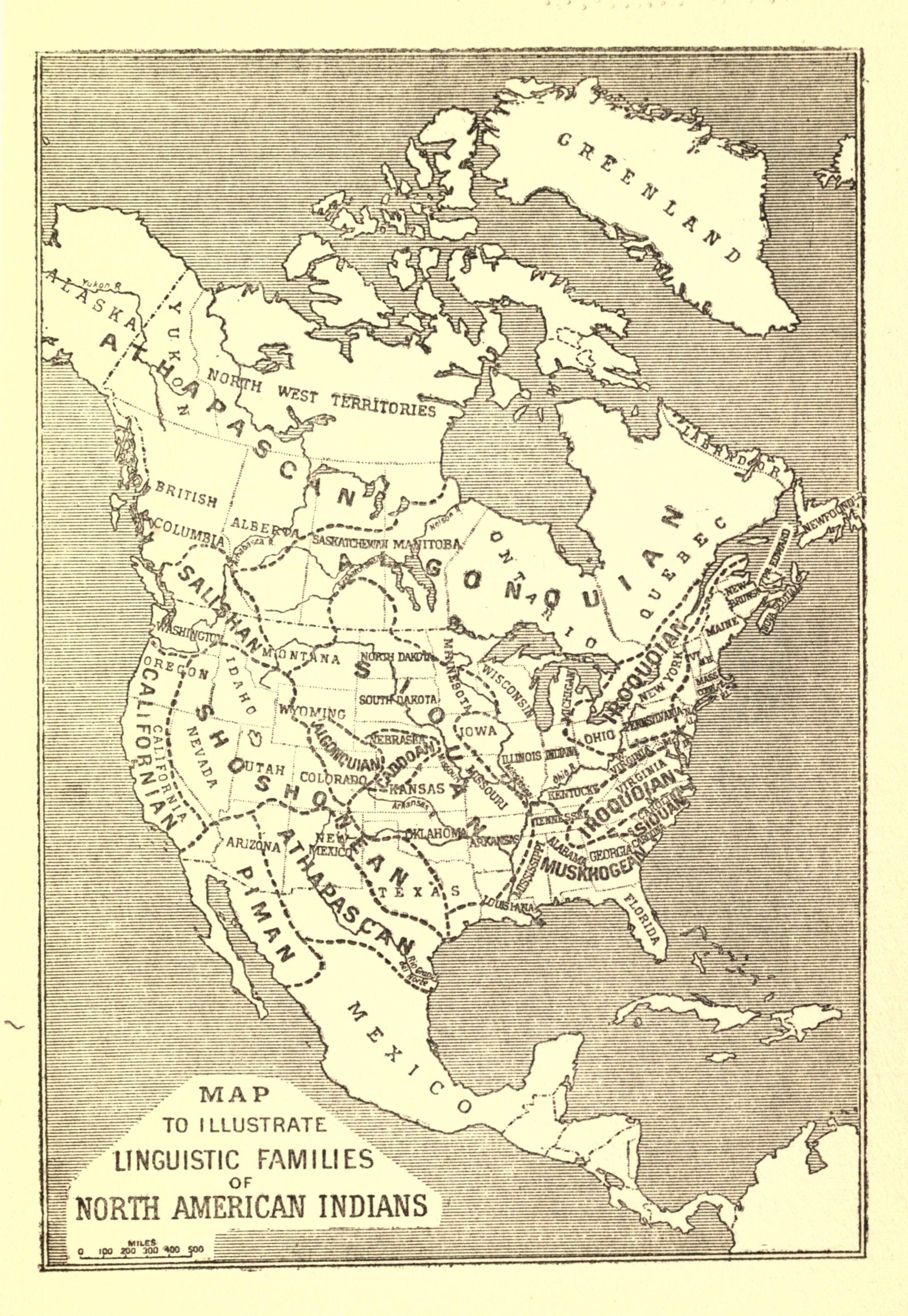 MAP SHOWING THE LINGUISTIC STOCKS OF THE NORTH AMERICAN INDIANS