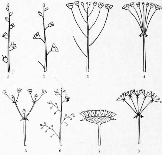 | Umbel. An inflorescence in which the flower-stalks all radiate from one point | 9 |