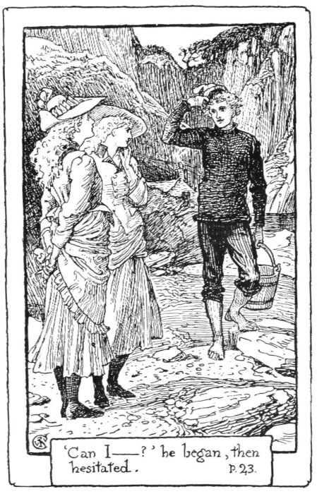“Angels,” said Mavis. “Joan says he’s good. But—Ruby—I shouldn’t think angels would laugh.” She had scarcely said the words when they saw running down the rough slope from the hut the figure of a boy. He ran fast and lightly, his feet scarcely seeming to touch the stones; he was slight and very active-looking; it was pretty to watch him running, even though as he came close it was plain that he was only a simple fisher-boy, in rough clothes, barefoot and sunburnt. He slackened his pace a little as he came near the children, then glancing at them with a smile he lifted his dark blue cap and stopped short.