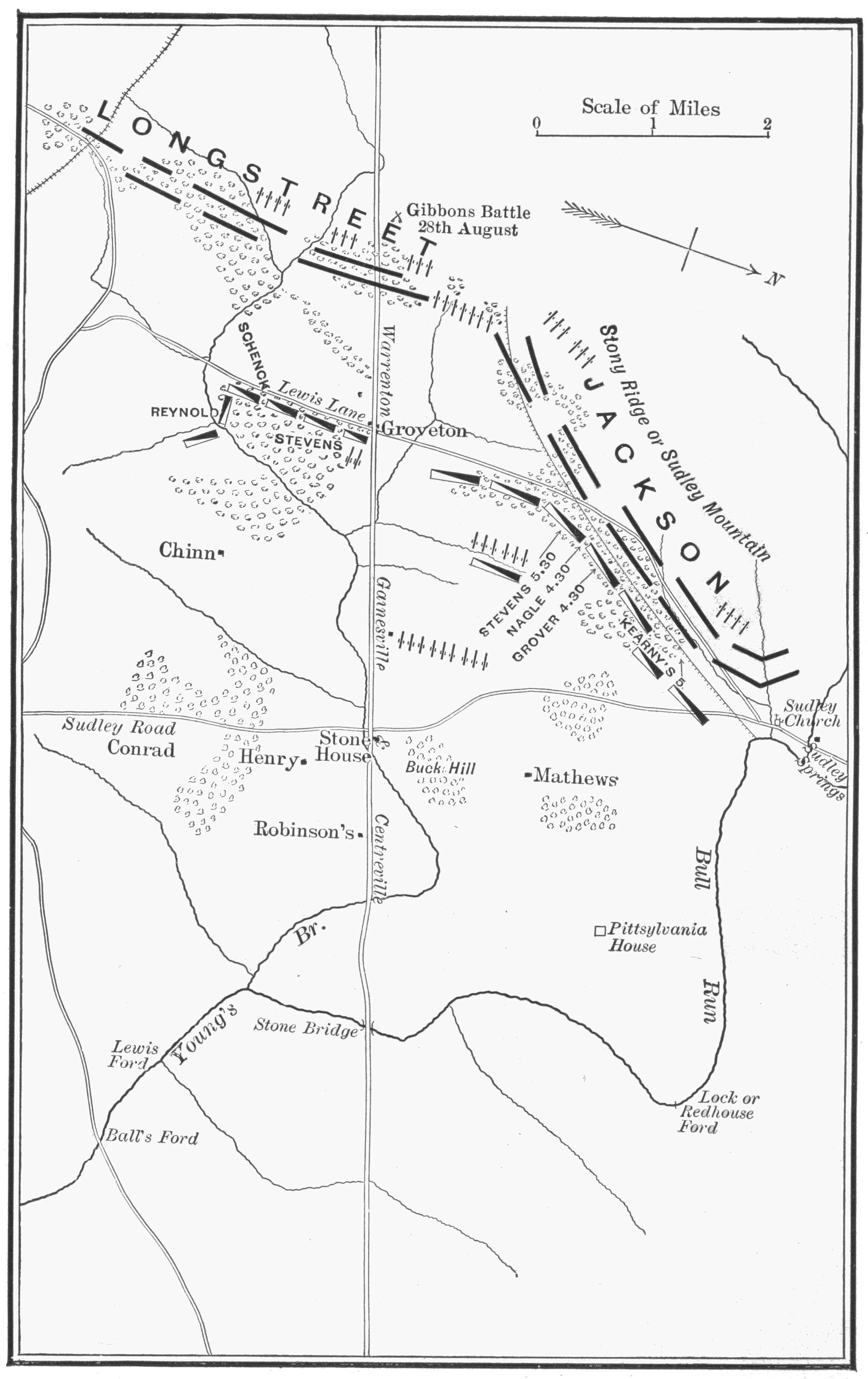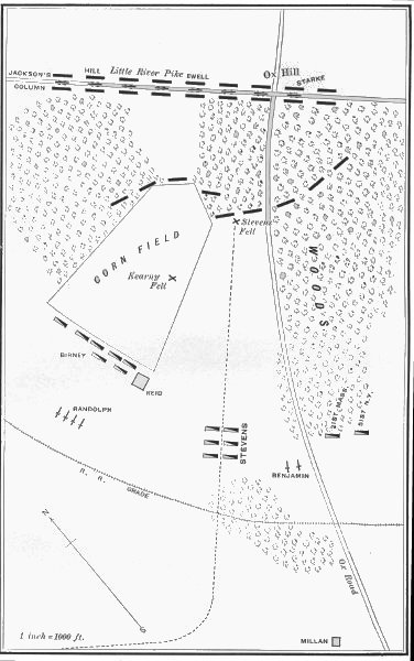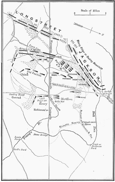 [20] The reports of Jackson and his subordinates indulge in much exaggeration as to driving the Union forces in their front, but Longstreet, with more truth, states in his book, p. 189, that “Jackson failed to pull up even on the left.”