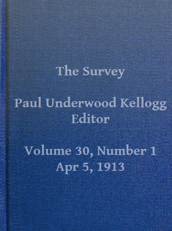 The Project Gutenberg EBook of The Survey, Volume XXX, Number 1, April 5, 1913, by Various This eBook is for the use of anyone anywhere at no cost and with almost no restrictions whatsoever. You may copy it, give it away or re-use it under the terms of the Project Gutenberg License included with this eBook or online at www.gutenberg.org Title: The Survey, Volume XXX, Number 1, April 5, 1913 Author: Various Editor: Paul Underwood Kellogg Release Date: September 2, 2013 [EBook #43625] Language: English Character set encoding: ISO-8859-1 *** START OF THIS PROJECT GUTENBERG EBOOK THE SURVEY, APRIL 5, 1913 *** Produced by Bryan Ness, Richard Tonsing and the Online Distributed Proofreading Team at http://www.pgdp.net (This file was produced from images generously made available by The Internet Archive)