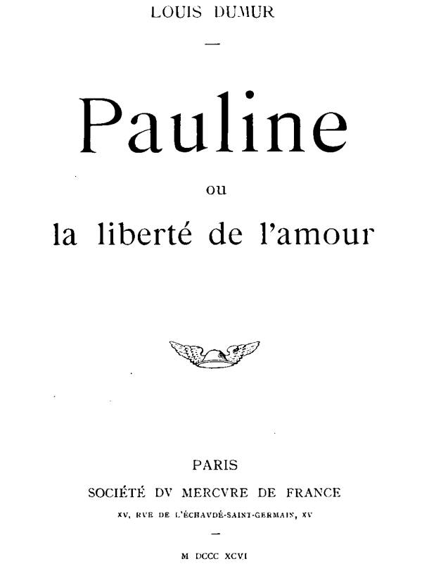| Note: | Images of the original pages are available through Internet Archive/Canadian Libraries. See http://archive.org/details/paulineoulaliber00dumu |