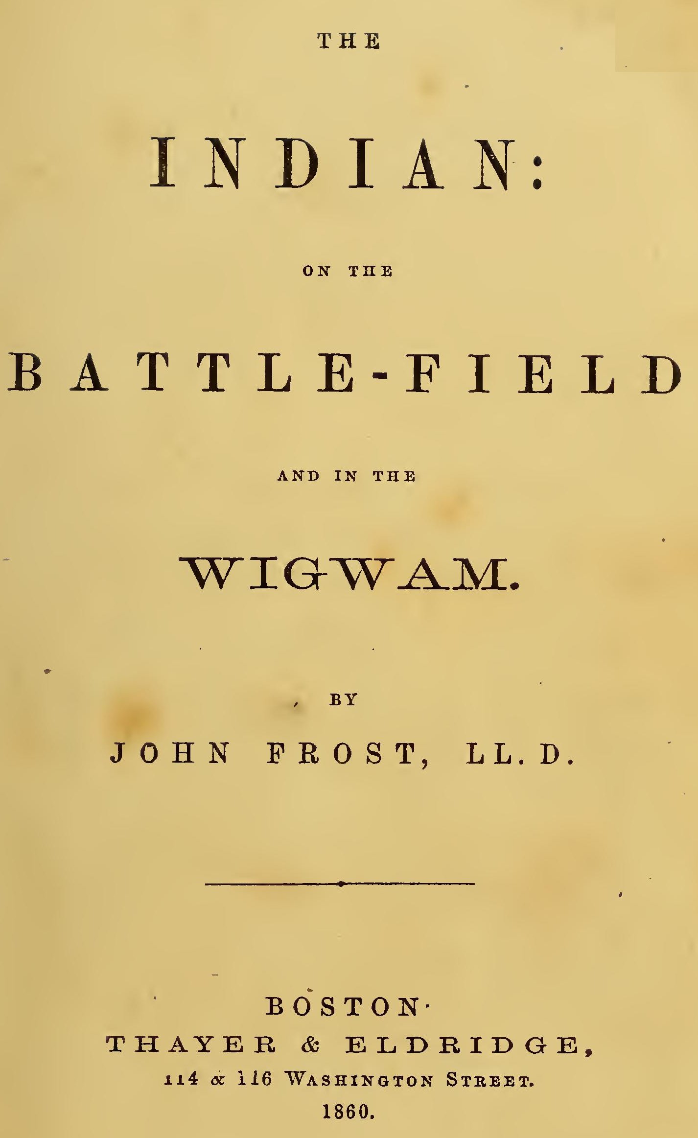 The Project Gutenberg EBook of The Indian: On the Battle-Field and in the Wigwam, by John Frost This eBook is for the use of anyone anywhere at no cost and with almost no restrictions whatsoever. You may copy it, give it away or re-use it under the terms of the Project Gutenberg License included with this eBook or online at www.gutenberg.org Title: The Indian: On the Battle-Field and in the Wigwam Author: John Frost Illustrator: Croome Release Date: April 14, 2014 [EBook #45385] Last Updated: November 6, 2016 Language: English Character set encoding: UTF-8 *** START OF THIS PROJECT GUTENBERG EBOOK THE INDIAN *** Produced by David Widger from page images generously provided by the Internet Archive
