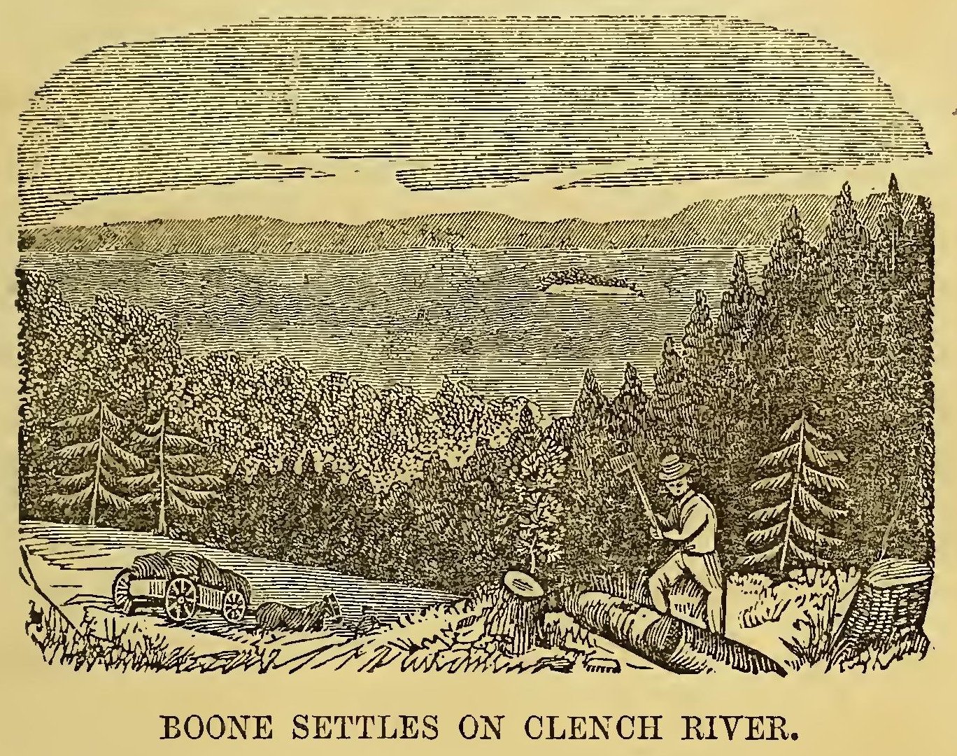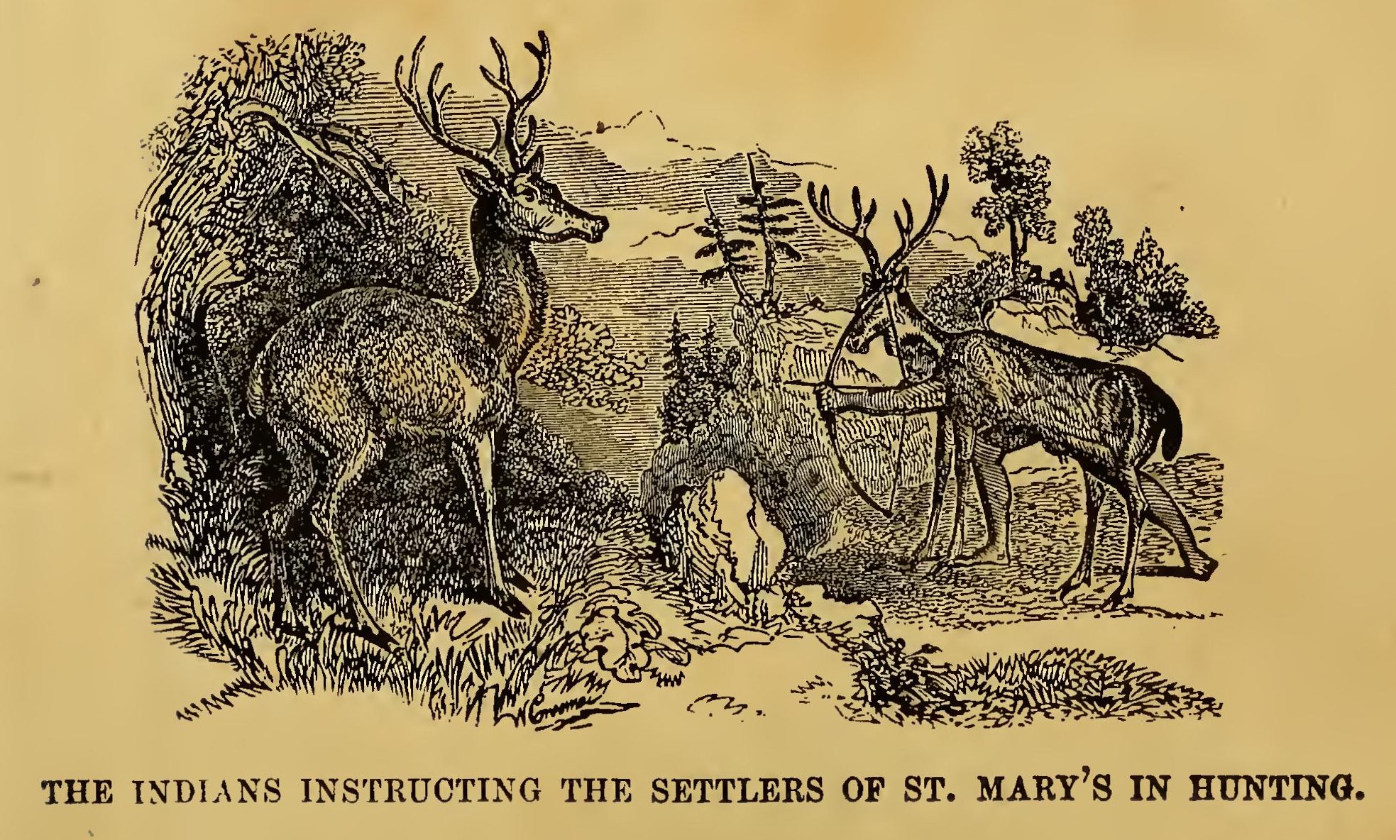 One day, while the farmer was away at the mill, the duty of driving up the cows to milk devolved on the wife, and that thrifty and industrious woman went out in quest of them. Not accustomed to going far from the house, she wandered through the woods, got bewildered, and just before dark sank upon the ground in despair. An Indian hunter soon came along, and guessing her situation, induced her to follow him to his wigwam, where she was kindly fed and lodged for the night by the hunter’s wife.