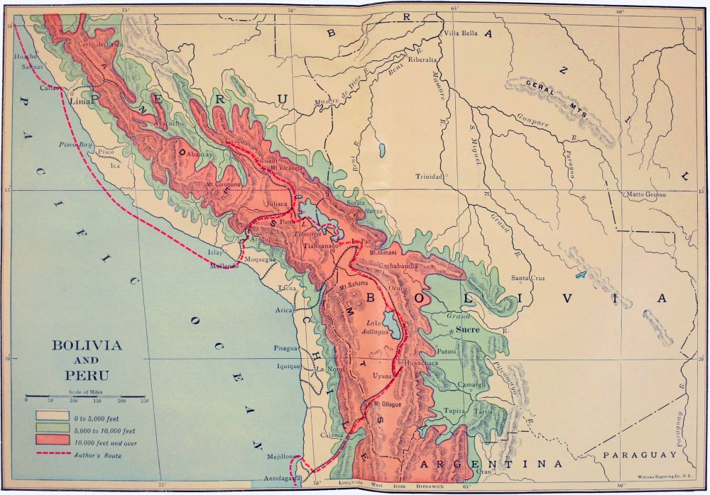 This book records observations made and impressions formed during a journey through western and southern South America from Panama to Argentina and Brazil via the Straits of Magellan. The nature of its contents is briefly outlined in the Introduction which follows, so all that I have to do here is to acknowledge gratefully the many kindnesses I received in every part of South America which I visited, and in particular from the following persons: Colonel Goethals, Chief Engineer of the Panama Canal, and other officers of the United States engineers stationed there, and Colonel Gorgas, head of the medical staff; the officials of the Peruvian Corporation in Lima and of the Peruvian Southern Railways in Mollendo, Arequipa, and La Paz; the officials of the Antofagasta and Bolivia Railroad Company; those of the Transandine Railway Company in Chile and those of the Buenos Aires and Pacific and Argentine Great Western Railways Companies in Mendoza and Buenos Aires, and also those of the Leopoldina Railway in Brazil. Nor must I fail to express my obligations to the heads in New York of the firm of Messrs. W. R. Grace Co., who advised me regarding my journey, and to my friend Professor Bingham of Yale University, who, familiar with Southviii America from his own travels and studies, has given me valuable help in many ways.