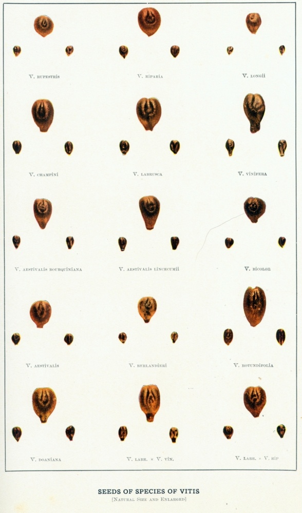 The botany of the grape has been the most perplexing problem to deal with in the preparation of this work. The variability of the grape is so great, and the variations are so often toward closely related species, that it is difficult to tell where one species ends and another begins. This, of course, has led to differences in opinions. Then, too, the several monographers have not had the same specimens to work with; men do not have the same powers of discrimination; and the arrangement of botanical groups, based upon the characters of the plants and the theory of descent with adaptive modifications, is not governed by definite rules; hence botanical divisions are arbitrary and differ with the judgments of the botanists who make them. For these reasons we have as many different arrangements of species of grapes as there are men who have worked them over.