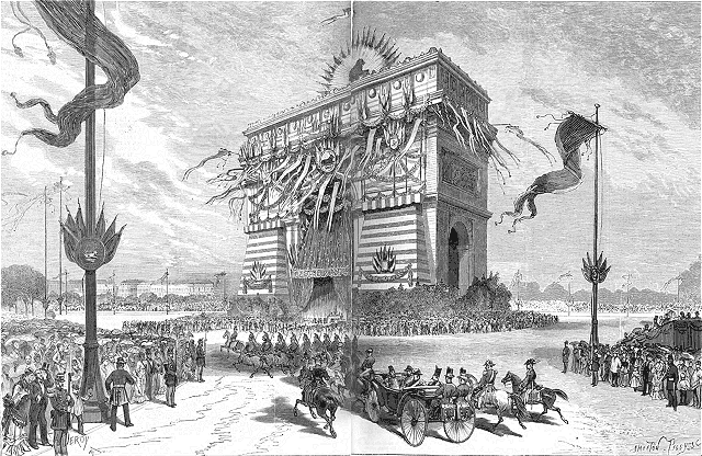 Le shah de Perse est arrivé à Paris le dimanche 6 juillet, et y a fait son entrée au milieu d'un concours immense de spectateurs. Nous ne rendrons pas compte à cette place des fêtes dont la réception de Sa Majesté a été l'occasion et dont nos lecteurs trouveront la description détaillée dans une autre partie du journal. Constatons seulement que ces fêtes ont été magnifiques et de nature à laisser une impression profonde dans l'esprit du souverain étranger.