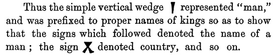 Now in the hieroglyphic writing of ancient Egypt, along with those pure phonetics or letters of an alphabet, are found numerous survivals of the older systems from which they sprung, and Champollion, who first attempted the task of forming a hieroglyphic dictionary and grammar, had to contend with all the difficulties of ideograms, polyphones, determinatives, and other obstacles.