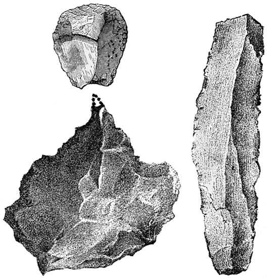| No longer doubted—Men not only existed, but in numbers and widely spread—Palæolithic Implements of similar Type found everywhere—Progress shown—Tests of Antiquity—Position of Strata—Fauna—Oldest Types—Mixed Northern and Southern Species—Reindeer Period—Correspondence of Human Remains with these Three Periods—Advance of Civilization—Clothing and Barbed Arrows—Drawing and Sculpture—Passage into Neolithic and Recent Periods—Corresponding Progress of Physical Man—Distinct Races—How tested—Tests applied to Historical, Neolithic, and Palæolithic Man—Long Heads and Broad Heads—Aryan Controversy—Primitive European Types—Canon Taylor—Huxley—Preservation of Human Remains depends mainly on Burials—About forty Skulls and Skeletons known from Quaternary Times—Summary of Results—Quatrefages and Hamy—Races of Canstadt—Cro-Magnon—Furfooz—Truchere—Skeletons of Neanderthal and Spy—Canstadt Type oldest—Cro-Magnon Type next—Skeleton of Cro-Magnon—Broad-headed and Short Race resembling Lapps—American Type—No Evidence from Asia, Africa, India, Polynesia, and Australia—Negroes, Negrillos, and Negritos—Summary of Results | 317 |