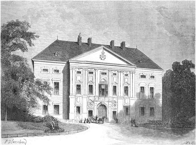 LE CHÂTEAU DE FROHSDORFF.--Vue prise du côté de la façade principale.--D'après le croquis de notre correspondant M. Petrovits.