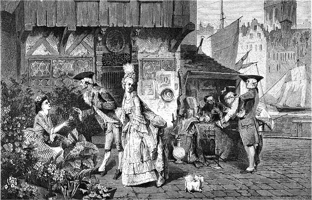 Aujourd'hui le marchand de diamants aborde son monde sur les boulevards, dans un foyer de théâtre ou bien autour du lac, à l'heure de la promenade. «Si vous saviez le superbe bracelet que j'ai à proposer! Il a fait partie de la toilette d'Anne de Newbourg, cette même reine que Victor Hugo a intercalée dans Ruy-Blas.» Demain il fera son boniment à Londres ou à Pétersbourg. Cet été, la scène où il s'est le plus fait voir a été l'Exposition de Vienne. Il comptait trouver là, d'abord beaucoup de curieux, beaucoup de riches oisifs, et, par suite, beaucoup d'acheteurs.