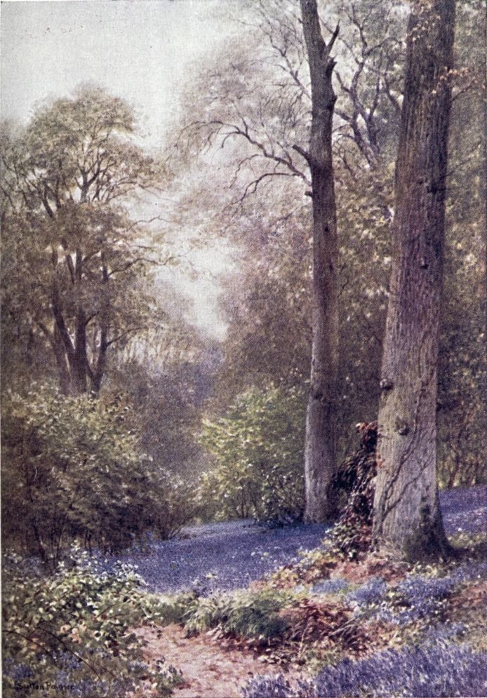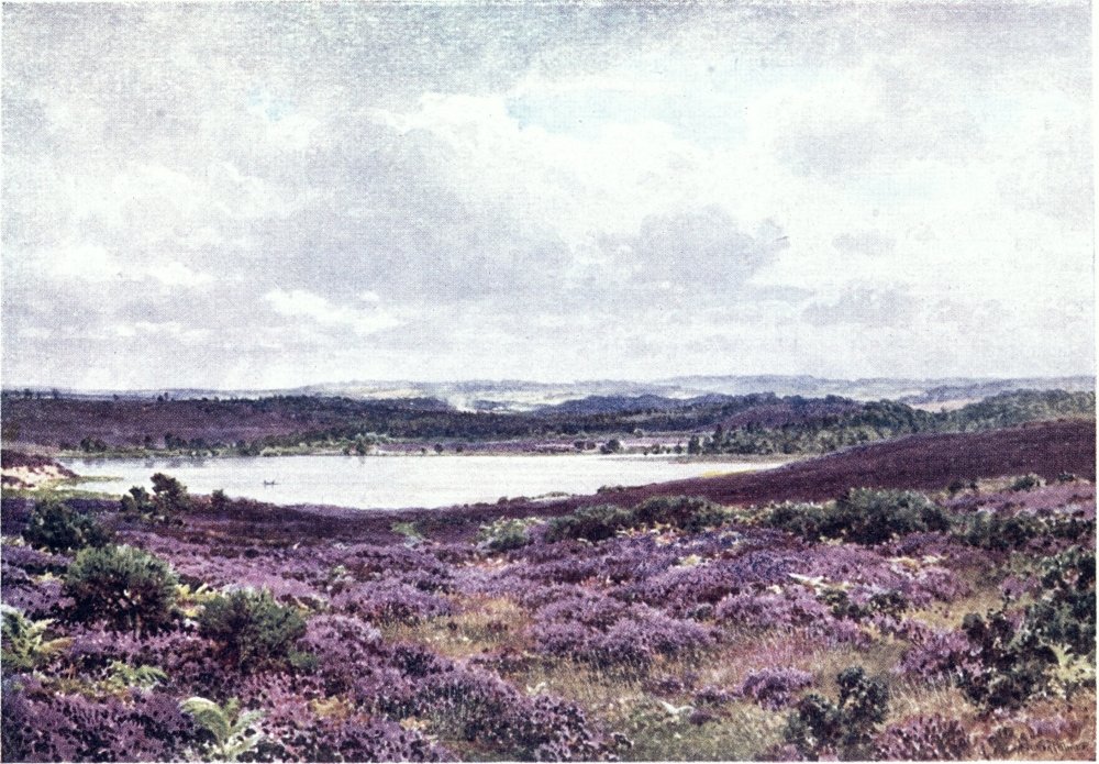 been improved into trim sheets to leave no note wanting in the landscape scale. Even within the wider bounds of London sparkles a lake like that of Wimbledon Park, where in hard winters ice is coined into silver. Sandy commons, as well as marshy bogs, are unexpectedly found dotted with ponds, often beautifully hidden behind a curtain of foliage, as the “Silent Pool” of Albury, invisible to the cyclist spinning by within a hundred yards. The modest titles of some of these Surrey lakes may well deceive a stranger who has not opened his eyes upon the “Waggoners’ Wells” of Hindhead or the “Ponds” of Frensham. On the south side of the county, where they once lay among thick woods, such waters often preserve the title of “Hammer Ponds,” from the days when they were dammed up to work iron forges.