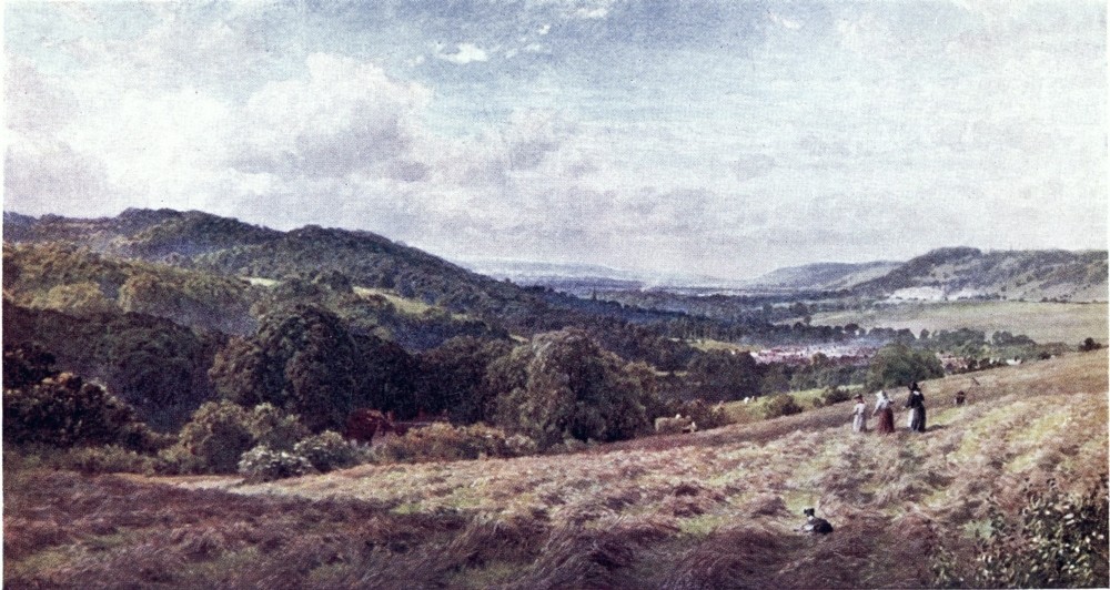 SURREY is but a small county, the latitudes or longitudes of which a good walker could traverse in a day; but perhaps no other in England can be found so close packed with scenes of manifold beauty. Among the “Home Counties,” at least, it seems best to answer Mr. P. G. Hamerton’s criterion of a perfect country as “one which, in a day’s drive, or half a day’s, gives you an entirely new horizon, so that you may feel in a different region, and have all the refreshment of a total change of scene within a few miles of your own house.” Its over-the-way neighbour Middlesex, which Cobbett, in his slap-dash style, puts down as all ugly, is at least comparatively tame and monotonous; and one must go as far as Derby or Devon for such boldly “accidented” heights{2} as those from which Surrey looks over the growth of London.
