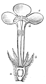 The course I pursued is also that which I shall point out to my readers. I shall first endeavour to explain to them as clearly as I can the botanical characteristics of the orders which contain plants commonly grown in British gardens; and at the end of my work I shall lay before them a slight outline of all the orders scientifically arranged, which they may study or not as they like. Most ladies will, however, probably be satisfied with knowing the orders containing popular plants; and these, I am confident, they will never repent having studied. Indeed, I do not think that I could form a kinder wish for them, than to hope that they may find as much pleasure in the pursuit as I have derived from it myself. Whenever I go into any country I have formerly visited, I feel as though I were endowed with a new sense. Even the very banks by the sides of the roads, which I before thought dull and uninteresting, now appear fraught with beauty. A new charm seems thrown over the face of nature, and a degree of interest is given to even the commonest weeds. I have often heard that knowviiiledge is power, and I am quite sure that it contributes greatly to enjoyment. A man knowing nothing of natural history, and of course not caring for anything relating to it, may travel from one extremity of a country to the other, without finding anything to interest, or even amuse him; but the man of science, and particularly the Botanist, cannot walk a dozen yards along a beaten turnpike-road without finding something to excite his attention. A wild plant in a hedge, a tuft of moss on a wall, and even the Lichens which discolour the stones, all present objects of interest, and of admiration for that Almighty Power whose care has provided the flower to shelter the infant germ, and has laid up a stock of nourishment in the seed to supply the first wants of the tender plant. It has been often said that the study of nature has a tendency to elevate and ameliorate the mind; and there is perhaps no branch of Natural History which more fully illustrates the truth of this remark than Botany.