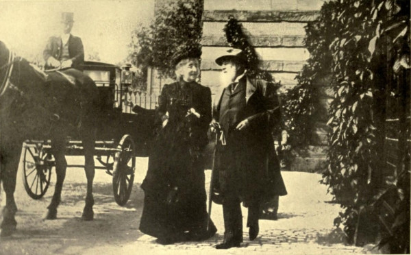 We advance slowly, full of emotion and thoughtful, as at the threshold of a temple. Some one has seen us, undoubtedly, as the Master appears at the door of the drawing-room and descends the steps, a big black Newfoundland bounding by his side.