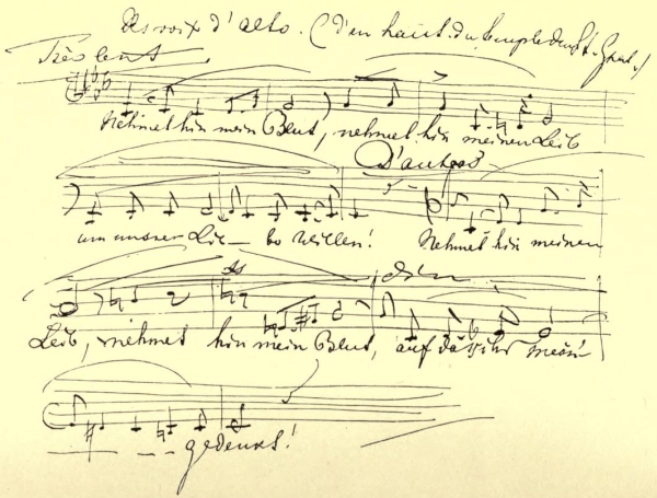 "Again, the first motif of the stringed instruments enters, expressing with vigour the natural emotion of a soul profoundly moved. Gradually it grows calmer and more serene, and finally arrives at the supreme peace of a sweet and beautiful resignation.