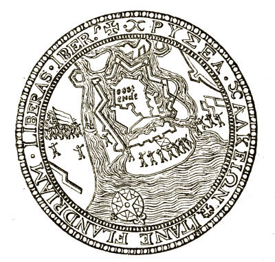 “In the mean time those Platæans, which having scaled the wall first and slain the watch, were now masters of both the towers, not only guarded the passages by standing themselves in the entries, but also applying ladders from the wall to the towers, and conveying many men to the top, kept the enemies off with shot both from above and below. In the mean space the greatest number of them having reared to the wall many ladders at once, and beaten down the battlements, passed quite over between the towers, and ever as any of them got to the other side, they stood still upon the brink of the ditch, and with arrows and darts kept off those that came along the wall to hinder the passage of their companions. And when the rest were over, then last of all, and with much ado, came they also which were in the two towers down to the ditch. And by this time the three hundred, that were to assist the watch, came and set upon them, and had lights with them; by which[17] means the Platæans that were on the further brink of the ditch discerned them the better from out of the dark, and aimed their arrows and darts at their most disarmed parts; for, standing in the dark, the light of the enemy made the Platæans the less discernible: insomuch as the last of them passed the ditch in time, though with difficulty and force; for the water in it was frozen over, though not so hard as to bear, but watery, and such as when the wind is at east rather than at north; and the snow which fell that night, together with so great a wind as there was, had very much increased the water, which they waded through, with scarce their heads above. But yet the greatness of the storm was the principal means of their escape.