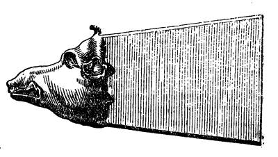 A ram with horned front; about her wast