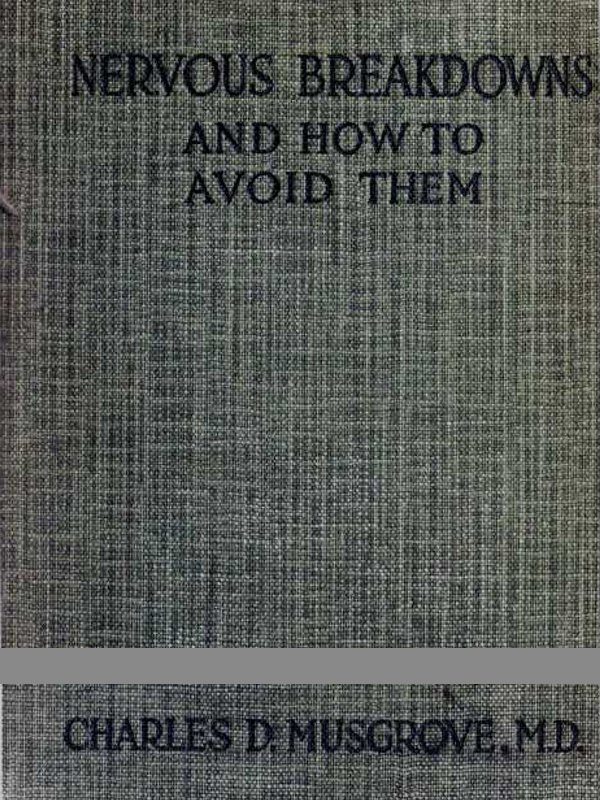 The Project Gutenberg EBook of Nervous Breakdowns and How to Avoid Them, by Charles David Musgrove This eBook is for the use of anyone anywhere in the United States and most other parts of the world at no cost and with almost no restrictions whatsoever. You may copy it, give it away or re-use it under the terms of the Project Gutenberg License included with this eBook or online at www.gutenberg.org. If you are not located in the United States, you'll have to check the laws of the country where you are located before using this ebook. Title: Nervous Breakdowns and How to Avoid Them Author: Charles David Musgrove Release Date: November 16, 2014 [EBook #47366] Language: English Character set encoding: UTF-8 *** START OF THIS PROJECT GUTENBERG EBOOK NERVOUS BREAKDOWNS *** Produced by Charlene Taylor, Fay Dunn, Bryan Ness and the Online Distributed Proofreading Team at http://www.pgdp.net (This file was produced from images generously made available by The Internet Archive/American Libraries.)
