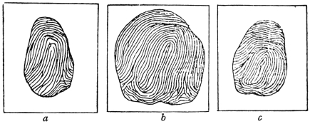 Antique references to finger-print patterns are not numerous. In the anatomical text-books of my student days, I cannot recall a single example of their having been noticed or figured, and no figure was printed in the usual plates of anatomy of my time. Malpighi, writing in 1686, tersely alludes to the ridges which, he says, form different patterns (diversas figuras describunt).
