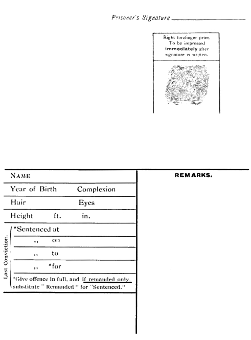 When we approach the limits of written history we begin to hear faint inarticulate murmurs of a time when the lines on human fingers began to arrest notice and interest. Thus we sometimes find in later neolithic pottery, nail and finger marks, used to adorn the sun-dried pots in common use. The Babylonians used their finger nails as seal-marks on commercial tablets, and the Chinese have occasionally done the same. Not many years ago, as I myself have often witnessed, when sealing-wax or wafers were used more than they are now, servant girls were wont to impress their thumb-mark on the soft wafer or wax. There are several characters in the Chinese alphabet (of some 30,000 letters) which suggest such a use of finger-marks as seals, but after many years’ enquiry, I have not yet seen any direct evidence of their use for such a purpose.[A] The term Sho-seki is used in Japanese to denote foot-prints, and also the tracking of anyone. I have not met any passage or expression in which finger-prints are mentioned in Japanese works, except in regard to fantastical images of footprints of Buddha and the like. It is claimed, however, that prisoners on conviction were required to adhibit their mark as a seal of confession.[B] There has been no evidence adduced that either in China or Japan was there ever a system of identification by that means, although it is conceivable that the form of making a sign-manual may have originated from some dim perception of their value for identification.