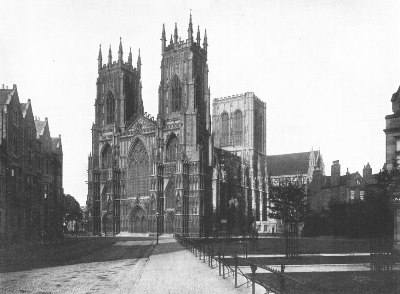 York Cathedral is one of the largest and grandest of English minsters. The present structure is the third on the site, and was built by the first Norman bishop. The choir was rebuilt by Archbishop Roger, 1154-81, the south transept by Archbishop Gray in 1215-55, and the north transept about the same time, while the Norman nave was gradually replaced by the present one between 1290 and 1345. The Lady-Chapel was added in 1360-73, and the present choir substituted for Archbishop Roger's before 1400. The towers date from the fifteenth century, and the edifice as thus rebuilt was reconsecrated in 1472. In its present form, therefore, the minster shows examples of the Early English Decorated, and early and late Perpendicular styles. The most striking features of the exterior are the noble west façade in the Decorated and the imposing central tower in the Perpendicular style.