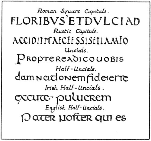 | Majuscule Writing—Square Capitals—Rustic Capitals—Uncials—Mixed Uncial and Minuscule Writing—Half-Uncials—Irish Half-Uncials—English Half-Uncials—Minuscule Writing—Lombardic Writing—Visigothic Writing—Merovingian Writing—Carlovingian Writing—Later Styles | 32 |