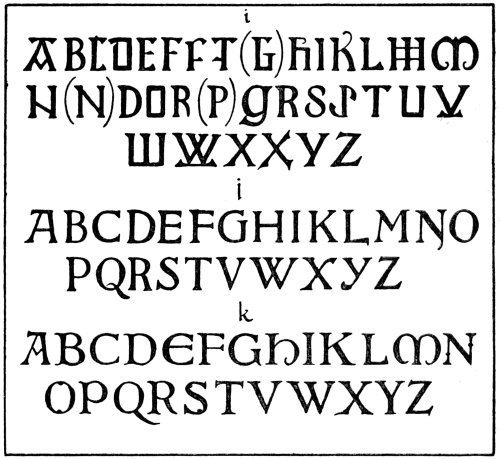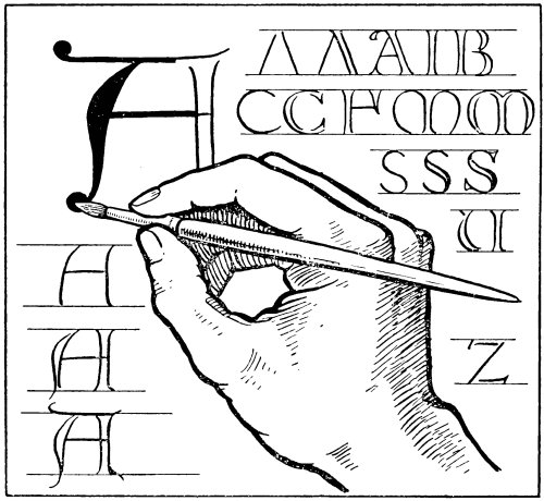 In fact, lettering enters so largely into decorative design that the study of some of the fine forms of lettering is of paramount importance to any artist who desires that the lettering that he uses should be of10 good construction. So many drawings have been spoiled through the introduction of weak and badly formed lettering that the need for training the student to produce lettering that is well-finished and of good form should be obvious to everyone.