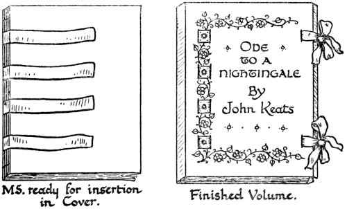 A few centuries ago, before printing was used for the production of books, illumination as a part of calligraphy was an important craft. Books were not only beautifully written but they were also richly decorated with gold and colours. The writing of long manuscripts was very slow work, compared with the increased speed of production afforded by the printing press; but, notwithstanding this, it appears to have been important that the writing should be rendered more beautiful by the enrichment of decoration. Unfortunately, although methods of book-production are now so speedy, most of the lettering is of the barest and crudest kind. Book-decoration seems to be, in most cases, confined to illustration, and even this does not often form an altogether inseparable part of the book.