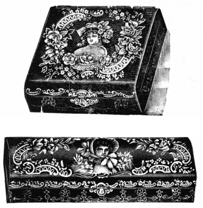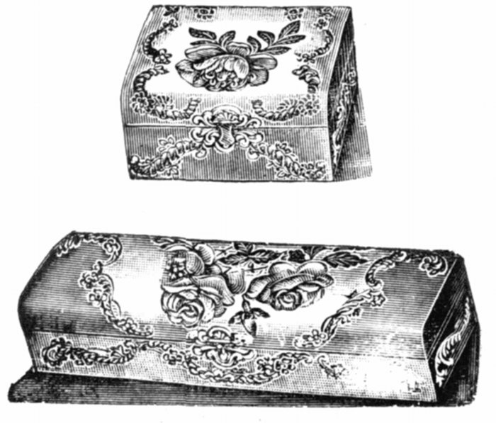 | 45/33. White Celluloid, | colored flower front decoration, plush binding and corner tips, nickel clasp; spaces for 18 cabinets and 8 cards | $16 00 | |