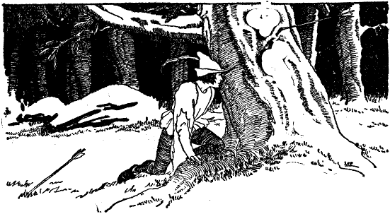 We were within five feet of each other. All the time he held the dagger on high always ready to strike. It flashed through my senses that I was dallying long enough, so with a jump I flew away from my tree and made deeper into the woods.