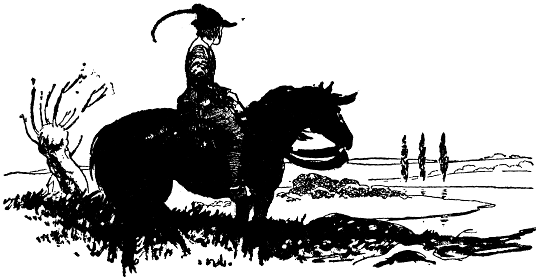 To satisfy my own curiosity I gazed a long time up and down the road. There was nothing as far as I could see that could have given him cause for alarm. The whole highway was as void as a desert save that on the brow of the hill, like a speck in the sky, there came riding towards us a solitary horseman, booted and spurred, in all likelihood a guest for the village inn for the night. At most he was only a passing stranger like hundreds of others. I smiled at myself that I had taken the Fool so seriously. I went back to have my laugh out with Le Brun and to wait for my brother’s gear.