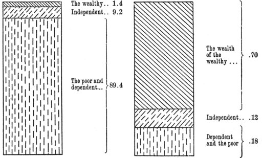 177.  “It is interesting to remark that, while in 1893 the number of the propertyless families reached over 7-millions, the national and local Building and Loan Associations having net assets of over $450,000,000, have,” in 25 years, “helped to secure” only “probably over 400,000 homes,” says Mr. Wright, U. S. Commissioner of Labor. The World Almanac, 1899, p. 168; ib., 1900, p. 172. But that inability is aggravated by the taxation unjust to the poor. See here, pp. 174-178.