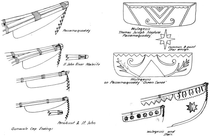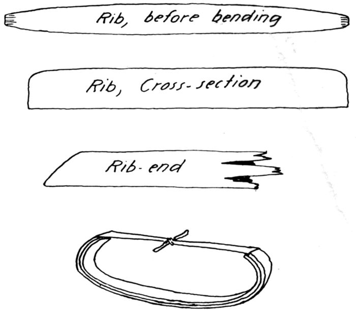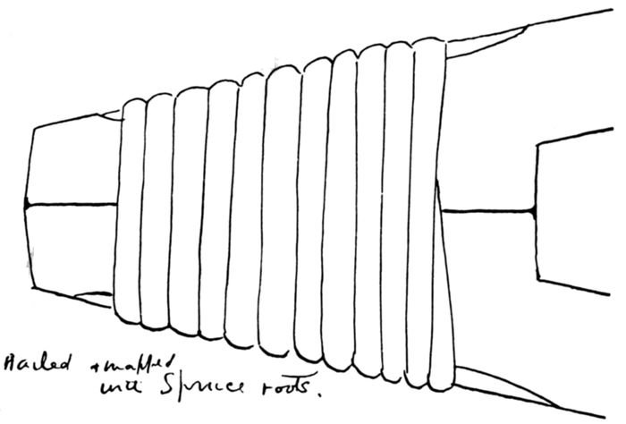 | 25 | Gunwale ends nailed and wrapped with spruce roots. (Sketch by Adney.) | 31 |