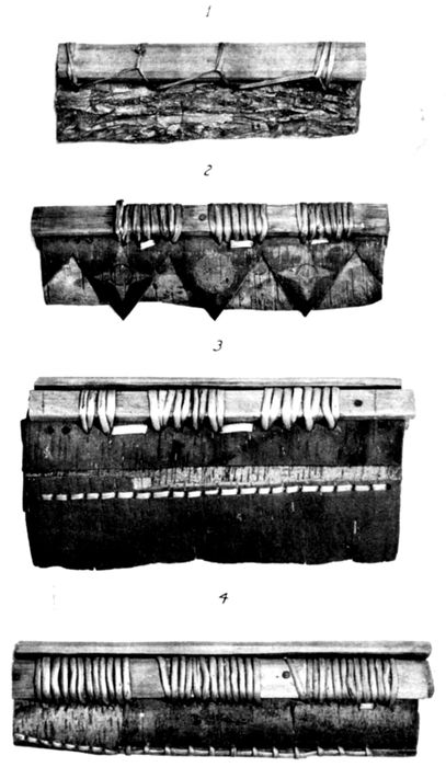 | 22, 23 | Sketches: Effect on canoe bottom of crimping and goring bark. | 30 |