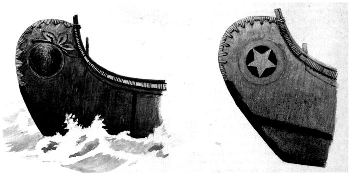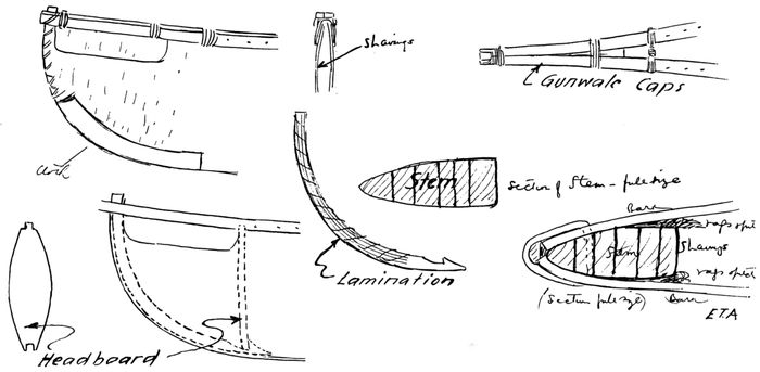 | 30 | End details, including construction of stem-pieces. (Sketches by Adney.) | 35 |
