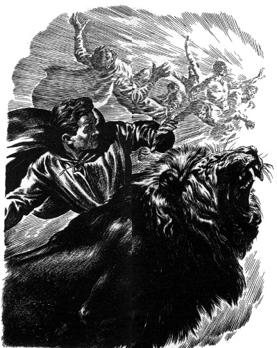 Dan couldn't decide whether the word "Swept" was part of the warning or just an afterthought. In any case, he had plainly heard a struggle here and now there was nothing to be seen. Alert for more brass plates, he wound his way through the streets until he came out on a broad avenue. On the opposite side were a number of tall, many-windowed buildings like apartment houses. On the sidewalks and small lawns in front, crowds of children were playing. They were wearing low boots, leather shorts or skirts, brightly colored blouses and hose, and yellow capes. Walking quietly among them was a tawny animal with the look and lordly manner of a lion.